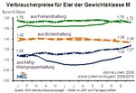 (AM) Es sieht nicht so aus, als wollte sich bis zum Jahresende auf dem Eiermarkt noch etwas ändern wird. Die Preise stagnierten auf dem hohen Niveau. Eier auf dem freien Markt sind knapp.