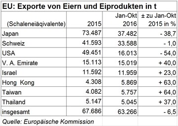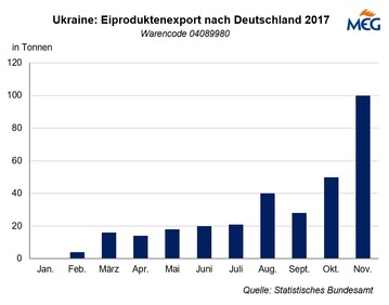 (MH) Seit 2014 wurden die die Zölle auf Waren mit Ursprung in der Ukraine, gemäß der Verordnung Nr. 374/2014 des Europäischen Parlaments und des Rates gesenkt oder abgeschafft. Dennoch gab es zwischen Januar 2014 und Ende 2017 keine erfassten Exporte von Schaleneiern zum Konsum aus der Ukraine...