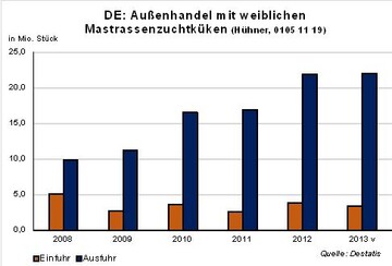 (ESK) In den ersten fünf Monaten 2015 führte Deutschland verstärkt Eieralbumin aus. Mit 3.100 t stieg die Menge von flüssigem und gefrorenem Albumin nach Angaben des Statistischen Bundesamtes um 36,4 %. Rund ein Drittel davon wurde allein im Mai ausgeführt. Bei getrocknetem Albumin stieg um der...