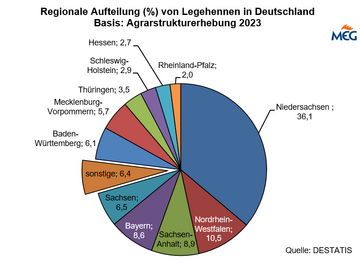 Niedersachen blieb Hennenland Nummer 1 (MMB) Niedersachsen konnte 2023 seine Position als führendes Geflügelland behaupten. 36,1 % aller bundesdeutschen Legehennen wurden in Niedersachsen gehalten. Nordrhein-Westfalen folgte mit 10,5 % der registrierten Tiere auf Platz zwei. Einen nennenswerten...