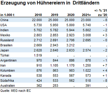 (AM) Zum heutigen Welteiertag bietet sich ein Blick auf dieEierproduktion in den großen Erzeugerländern der Welt an. Die World Egg Organisation (WEO) hat jüngst Daten wichtiger Produktionsländer für 2024 veröffentlicht. Danach ist China mit 23,2 Mio. t nach wie vor und mit weitem Abstand der...