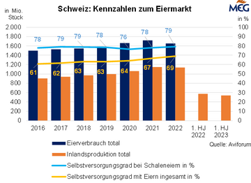 (MH) Kürzlich veröffentlichte Aviforum die Halbjahresbilanz am Schweizer Eiermarkt. Nachdem sich die Eiererzeugung in der Schweiz in den vergangenen Jahren kontinuierlich erhöhte, war 2022 das erste Jahr, indem insgesamt wieder weniger Eier produziert wurden. Von Januar bis Juni 2023 wurde die...