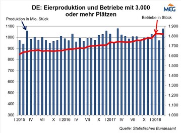 (MMB) Im ersten Quartal 2018 meldeten im Schnitt 1.823 Betriebe mit 3.000 und mehr Haltungsplätzen zur monatlichen Legehennen- und Produktionsstatistik des Statistischen Bundesamtes. Im gleichen Zeitraum des Vorjahres waren es erst 1.740 Betriebe. Insgesamt wurden 49,29 Mio. Hennenhaltungsplätze...