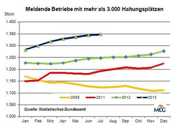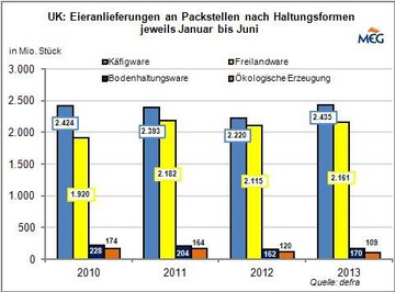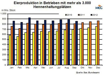 (MMB) Im ersten Halbjahr 2013 übertraf die deutsche Eierproduktion klar das Vorjahresergebnis. Laut Statistischem Bundesamt wurden in den ersten sechs Monaten dieses Jahres in Betrieben mit mehr als 3.000 Hennenplätzen 5,416 Mrd. Eier produziert, das waren 3,7 % mehr als im gleichen Zeitraum des...