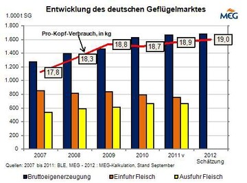 (MH) Von Januar bis August 2012 wurden im Vereinigten Königreich 1,066 Mio. t Geflügelfleisch produziert, dies veröffentlichte das Department for Environment. Food and Rural Affairs (defra). Der Vorjahreswert wurde damit um knapp 4 % übertroffen.