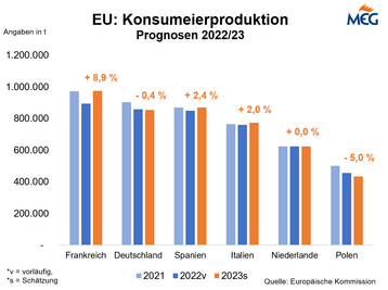 (MMB) Im Bundesschnitt kamen im Jahr 2022 noch 59,7 % der gelegten Eier aus der Bodenhaltung und 21,5 % aus der Freilandhaltung. 13,8 % waren Bioeier und nur noch 5,0 % waren Kleingruppeneier. Die aktuelle Tierschutz-Nutztierhaltungsverordnung sieht für die Kleingruppenhaltung eine Auslauffrist...