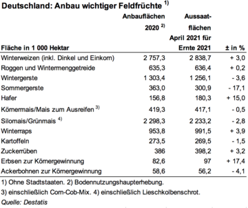 (Destatis) Mit einem Anteil von 47 % an der gesamten Getreideanbaufläche bleibt der Winterweizen auch im Jahr 2021 Spitzenreiter beim Getreide. Wie das Statistische Bundesamt (Destatis) ersten Schätzungen zufolge mitteilt, haben die Landwirtinnen und Landwirte in Deutschland für das Erntejahr 2021...