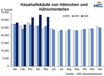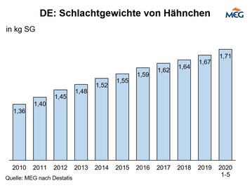 (MMB) In den ersten fünf Monaten dieses Jahres wurden laut Statistischem Bundesamt 257,5 Masthähnchen geschlachtet. Damit wurden in etwa genauso viele Tiere geschlachtet wie von Januar bis Mai 2019. Das durchschnittliche Schlachtgewicht nahm im gleichen Zeitraum zu. Im Mittel der Berichtsmonate...