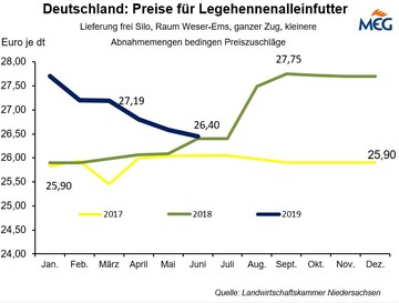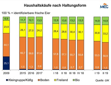 (MMB) Im ersten Halbjahr 2019 wurde die Eierproduktion in meldepflichtigen Betrieben (3.000 oder mehr Hennenhaltungsplätze) noch um 2,9 % auf 6,28 Mrd. Eier ausgeweitet. So belegt es die Produktionsstatistik des Statistischen Bundesamtes. Im Juli wurde das Vorjahresergebnis allerdings um 0,7 %...
