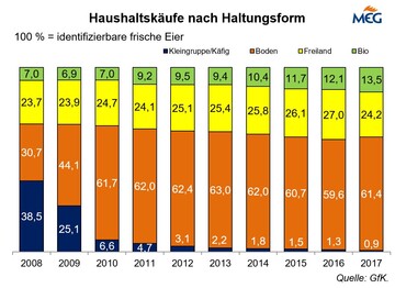 (MMB) Die meisten Eier werden in Deutschland in Verpackung gekauft, dies belegt das GfK-Haushaltspanel. Die Käufe von losen Eiern beliefen sich im ersten Halbjahr 2018 lediglich auf 6,0 % der gekauften Eier. Bei den verpackt gekauften Eiern dominiert klar die Zehnerpackung, die es auf 77,4 % der...
