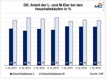 (MMB) Der Eierverbrauch wird 2016 nochmals gewachsen sein, und zwar um 2 Stück auf 235 Eier pro Kopf der Bevölkerung. Davon gehen aktuelle Berechnungen der MEG aus. Dabei haben sich die Haushaltskäufe laut GfK kaum steigern können (siehe Eier kompakt 43/2016). Im Gesamtverbrauch fließt aber auch...