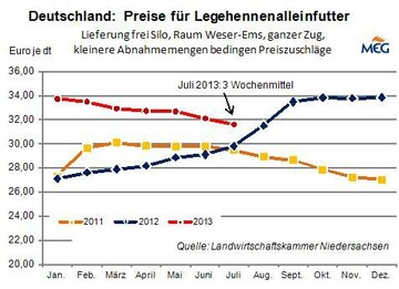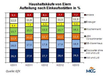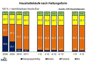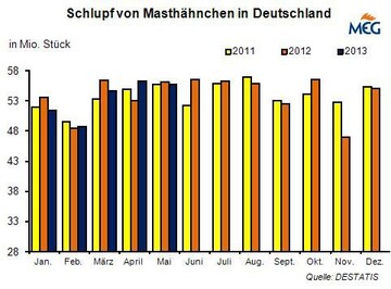 (MMB) Laut aktueller MEG-Kalkulation des potenziellen Legehennenbestands in der EU werden im November 2013 rund 343 Mio. Hennen in der EU eingestallt sein, das wären noch 2,4 % mehr als zwölf Monate zuvor und sogar 5,0 % mehr als im November 2011.