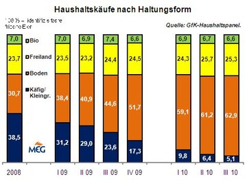 (MMB) Die aktuellen Informationen des Statistischen Bundesamtes zeigen, dass die Importe von Schaleneiern zuletzt weniger umfangreich waren. Der Bedarf war angesichts der wachsenden deutschen Erzeugung nicht mehr so ausgeprägt. Sowohl im August als auch im September 2010 lag das Importvolumen nahe...