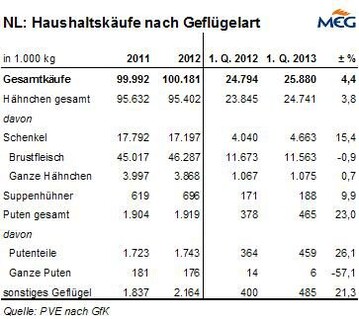 NL: Verbrauch von Geflügelfleisch stieg leicht