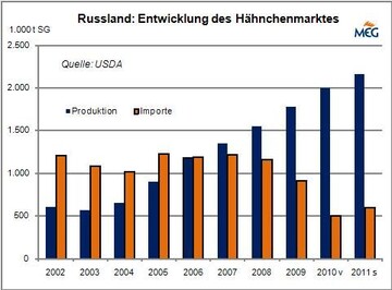 Russland: Selbstversorgung am Hähnchenmarkt in greifbarer Nähe