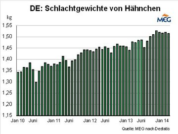 (MMB) Um den Wunsch der Konsumenten nach Teilstücken besser bedienen zu KÖNNEN, setzte die deutsche Hähnchenwirtschaft in den zurückliegenden Jahren vermehrt auf die Mast schwererer Hähnchen. Seit Januar 2010 erfasst das Statistische Bundesamt neben der monatlichen Schlachtmenge auch die Anzahl...
