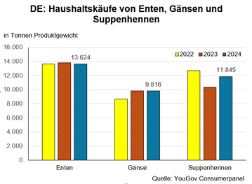 (MMB) Bereits in der Vorwoche berichteten wir über die Entwicklung der Haushaltskäufe von Geflügelfleisch insgesamt und von Hähnchenfleisch im Jahr 2024. Nach der Auswertung des YouGov Consumerpanel (vormals GfK-Haushaltspanel) lag auch die Kaufmenge von Putenfleisch im vergangenen Jahr über dem...