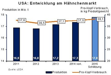 (MMB) Die USA sind der größte Geflügelfleischproduzent der Welt und die Zeichen stehen wieder auf Wachstum. Laut aktuellen Informationen des amerikanischen Landwirtschaftsministeriums (USDA) wird sich die amerikanische Hähnchenfleischproduktion in diesem Jahr auf 17,34 Mio. t belaufen, das wären...