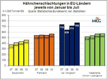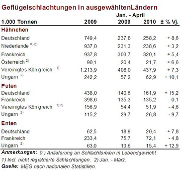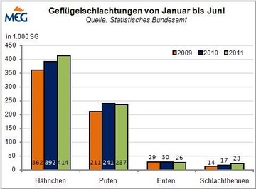 (MMB) Von Januar bis April 2011 schlüpften in Brasilien 2,01 Mrd. Masthähnchen, das waren über 4 % mehr als im gleichen Zeitraum des Vorjahres. Laut APINCO liegen die Schlachtergebnisse schon bis Juli 2011 vor. Danach wurden in den ersten sieben Monaten dieses Jahres mit 7,47 Mio. t um 6 % mehr...